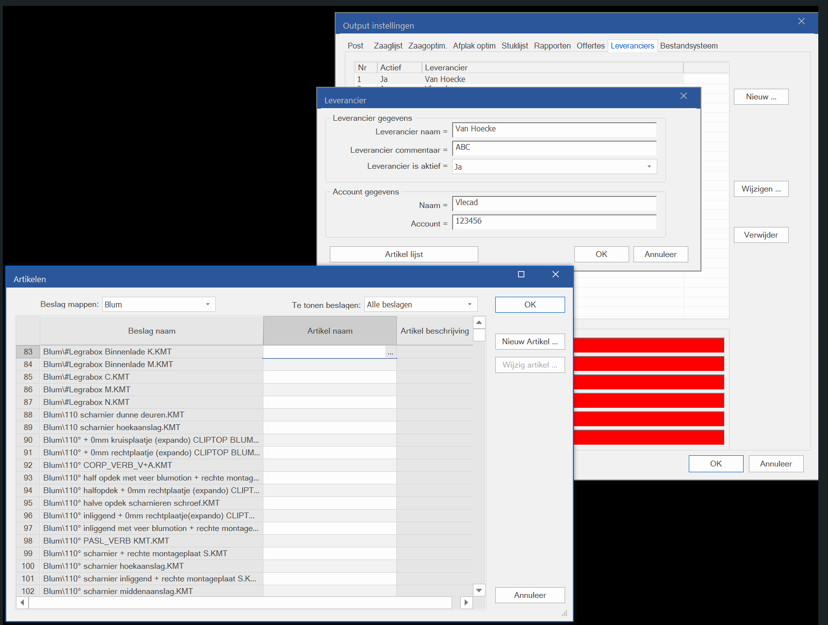 1x koppelen in de postprocessor instellingen ( uw ladenaam koppelen aan de correcte Van Hoecke naam)